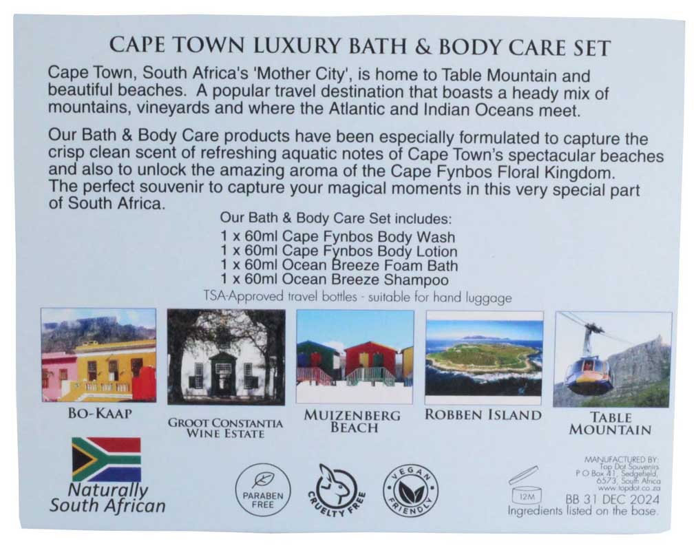 Our Bath & Body Care products have been especially formulated to capture the crisp clean scent of refreshing aquatic notes of Cape Town's spectacular beaches and to unlock the amazing aroma of the Cape Fynbos Floral Kingdom.